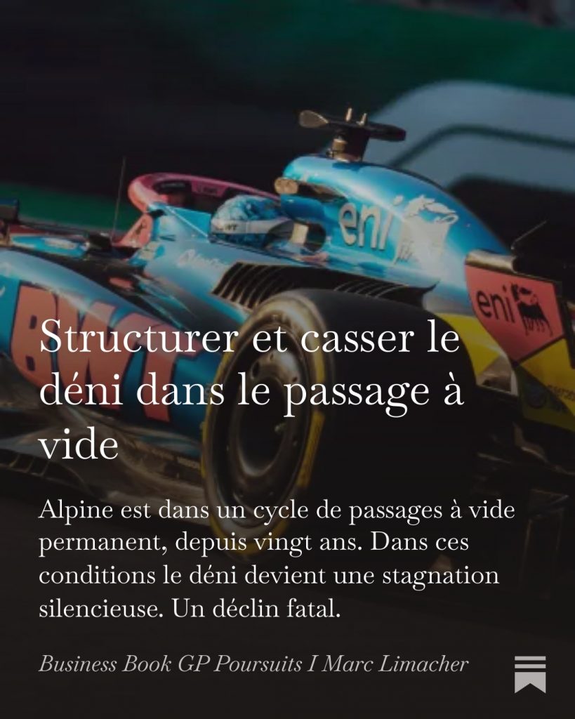 Alpine est dans un cycle de passages à vide permanent, depuis vingt ans. Dans ces conditions le déni devient une stagnation silencieuse. Un déclin fatal.